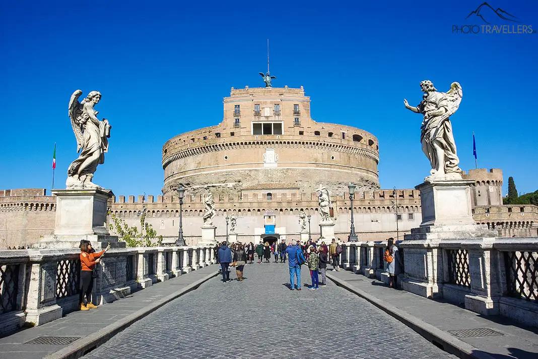 Originariamente costruito come mausoleo per l'imperatore romano Adriano, Castel Sant'Angelo è oggi un museo. Oggi Castel Sant'Angelo è un museo con una grande piattaforma panoramica. Nel frattempo serviva, tra l'altro, come rifugio papale e prigione. prigione. Il nome, tra l'altro, deriva dal fatto che l'arcangelo Michele Michele apparve sopra il castello e annunciò la fine della peste. Per questo motivo la sua figura in bronzo adorna ancora oggi la sommità dell'edificio.