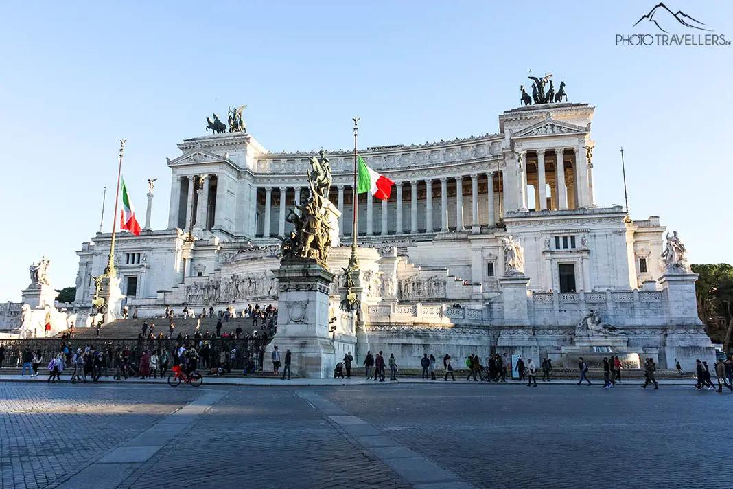 Il Monumento Nazionale a Vittorio Emanuele II è molto più conosciuto con il nome di macchina da scrivere, che è dovuto alla sua costruzione. costruzione. Il colossale edificio in marmo bianco fu eretto a partire dal 1885 come monumentoal primo re del Regno d'Italia. al primo re del neonato Regno d'Italia, Vittorio Emanuele II, fu costruito.